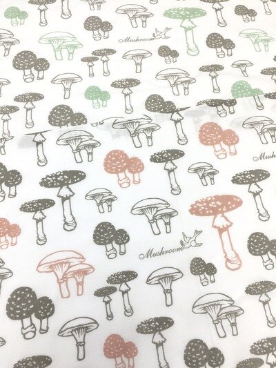 外国のアンティークテキスタイルのようなおしゃれなきのこ柄の手ぬぐいです。