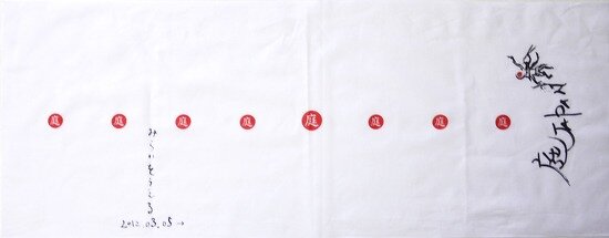 こちらは庭JAPANという庭師のグループで作成された作品です。 宮城県石巻市の復興支援活動をするときのメンバーの目印として使用されます。 庭JAPANの皆さんは「みらいをうえるプロジェクト」として、被災地の仮設住宅に木を植えることで木陰や目隠しをつくりプライバシーがなく無機質な仮設住宅に緑と安らぎを与え未来へとつないでいこうという活動をされています。 庭JAPANの皆さんの活動を是非ご覧になってください。