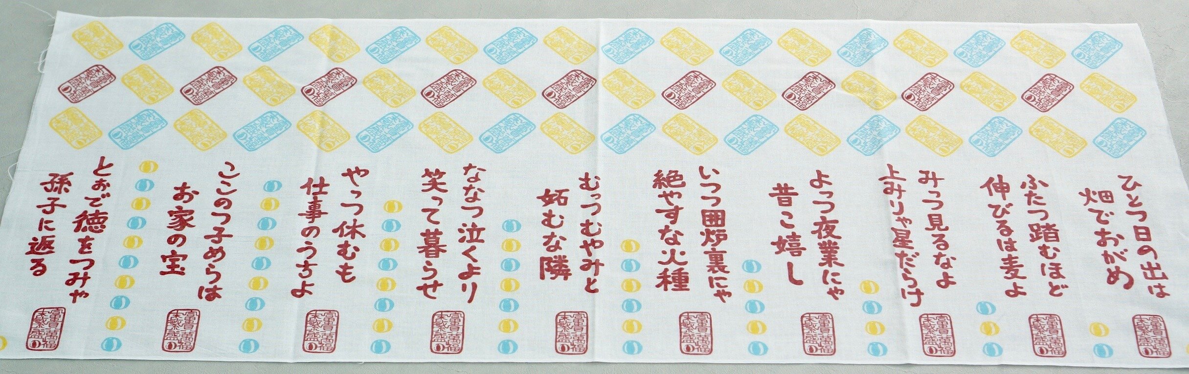 わらべうたうたい坂野知恵さんの富貴萬福末繁盛手ぬぐいです。