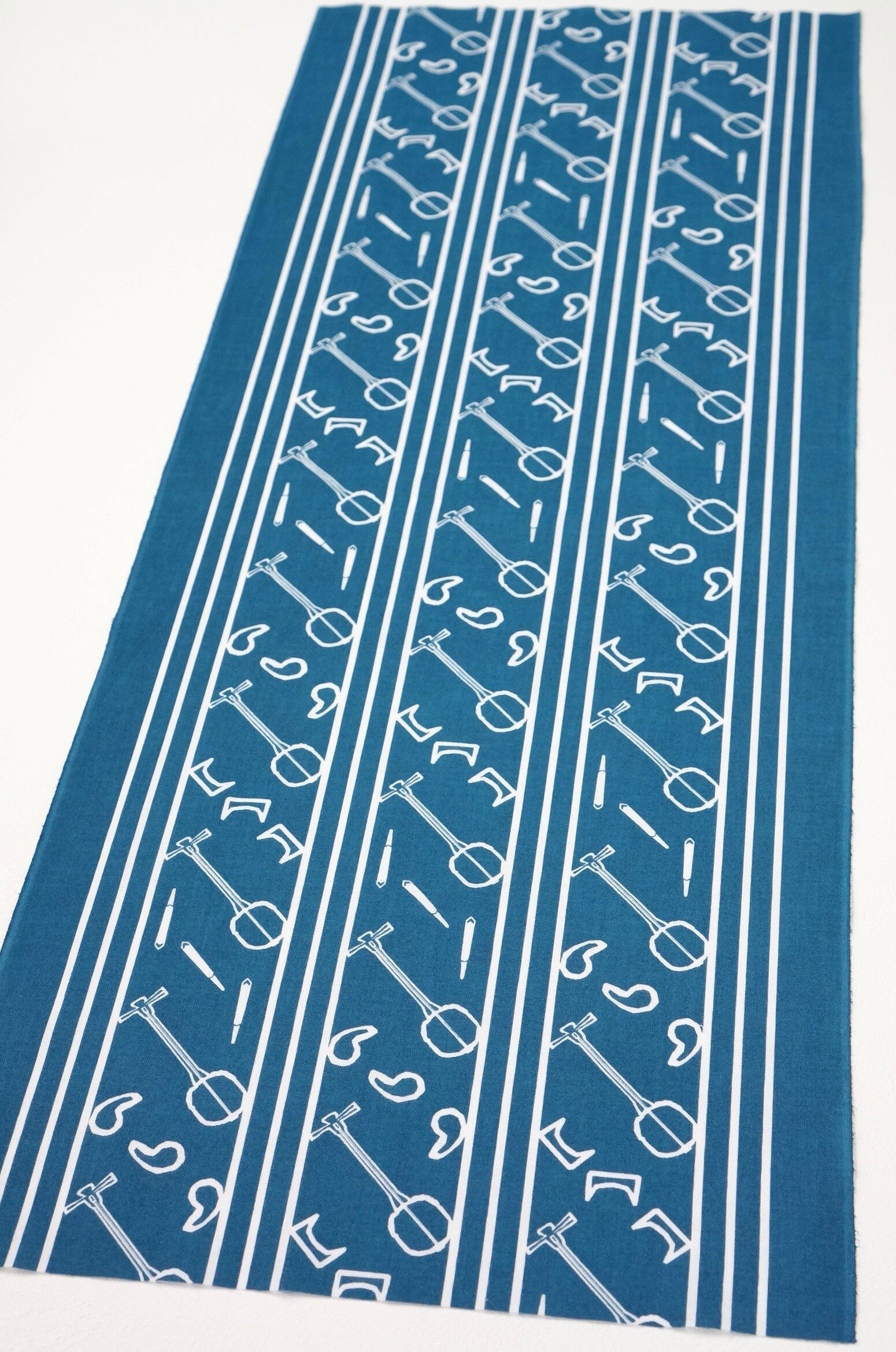 こちらの手ぬぐい、三線や小道具などを縦に並べたデザインでとてもスッキリされてます◎