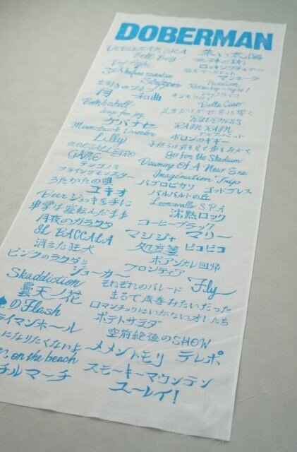 手ぬぐいにはこれまでの楽曲が書かれていてファンの方にはたまらない一枚となっております。