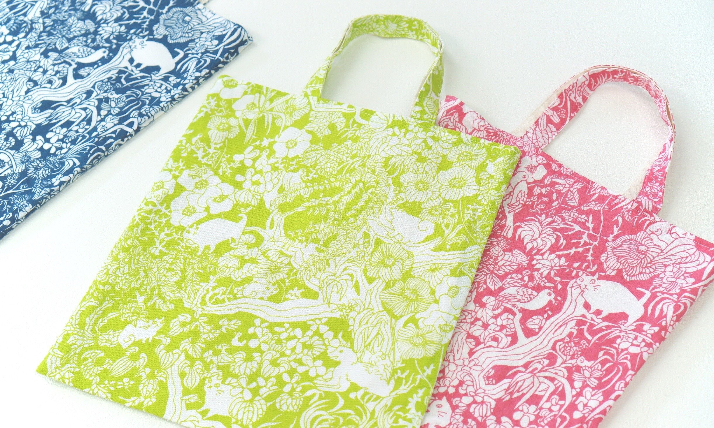 作家星川あすかさんの手ぬぐいをバッグとマスクに加工致しました