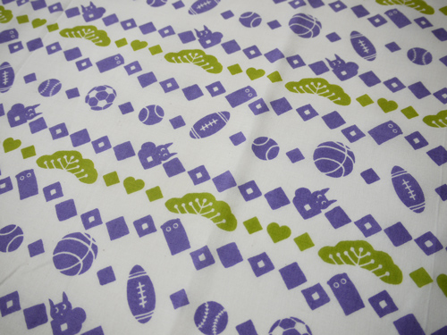 【 色数:2色 / 生地:岡 / ヨコ柄 】 結婚式2次会のプチギフト用に作成された作品です。 野球、サッカー、ラグビー、バスケット、いろんなボールがいっぱいの柄! お二人のお名前にちなんだ柄になっていますよ。 ...