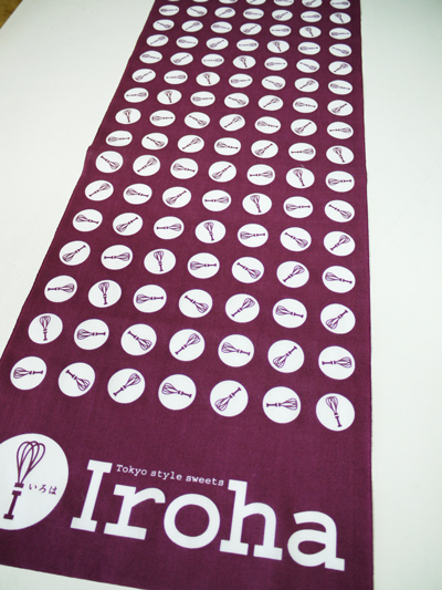 【 色数:1色 / 生地:岡 / タテ柄 】 お客様がインドでスイーツのお店をオープンされる際に作成された作品です。 丸の中には泡立て器のマークが入っています。 スタッフの皆さんが首や頭に巻いて使われているそう...