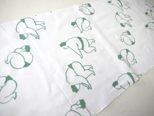 【 色数:1色 / 生地:岡 / タテ柄 / イラストレーター 】 イラストレーター、キリヤノゾミさまの作品です。 「力士手ぬぐい」です。 力士がでんぐりがえししてます! かわいすぎます! 手をついてまわろうとしてい...