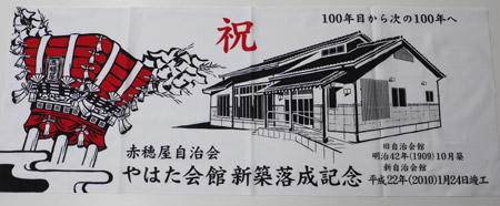 築100年にもなる自治会館落成のオリジナル記念手ぬぐい